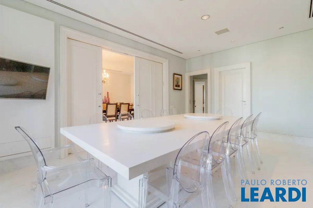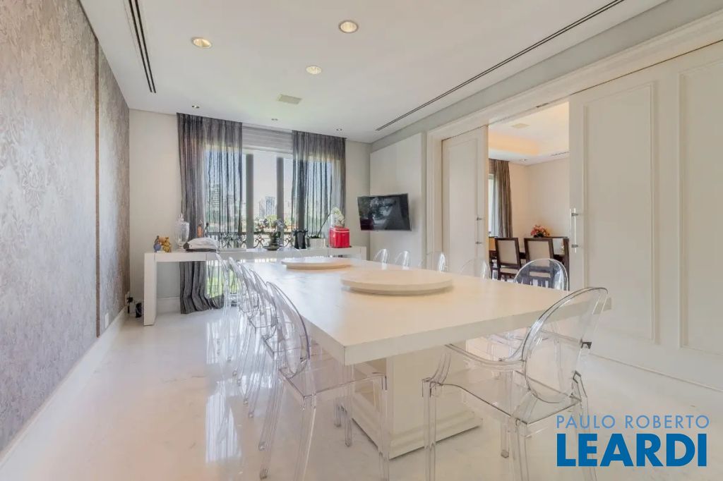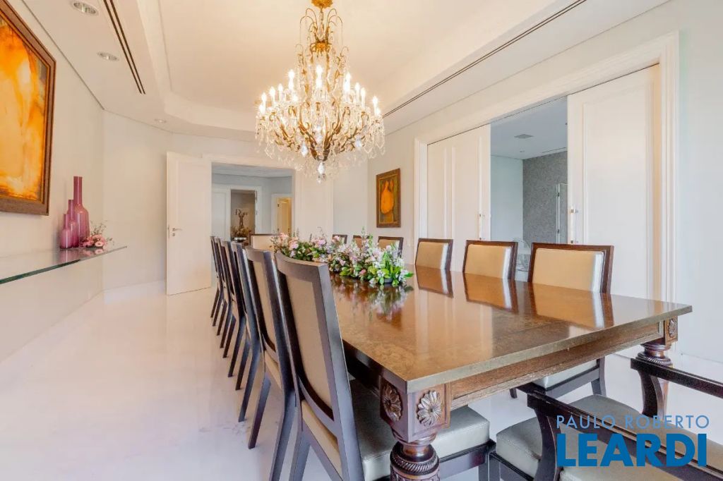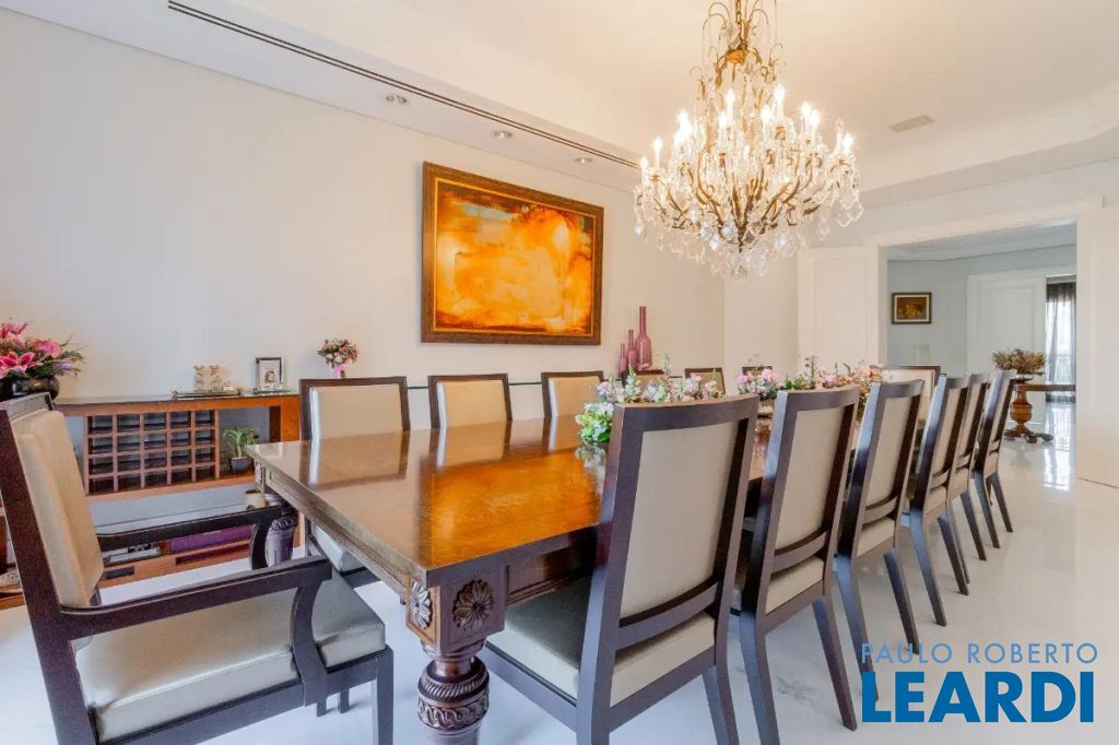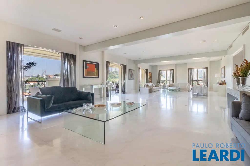 Viva a experiência definitiva de morar em um dos endereços mais cobiçados de São Paulo. Este espetacular apartamento à venda no bairro Higienópolis conta com impressionantes 700m² de área útil, redefine o conceito de amplitude e sofisticação urbana. O projeto arquitetônico privilegia a entrada de luz natural através de imponentes janelas teto-chão, que emolduram a vista privilegiada do bairro e criam uma conexão fluida com os ambientes internos. A área social é um verdadeiro convite ao convívio, integrando um luxuoso Home Theater e uma sala de estar monumental que se estende para uma varanda gourmet com fechamento em vidro, perfeita para recepções de alto padrão. Todo o imóvel conta com sistema de ar condicionado central, garantindo conforto térmico absoluto, e um piso de taco de madeira impecável que confere o charme clássico e atemporal da região. A ala íntima é um refúgio de privacidade e requinte, composta por 4 dormitórios amplos, todos configurados como suítes e com acesso exclusivo a sacadas privativas. A suíte master é um destaque à parte, oferecendo um closet generoso e uma sala de banho completa com banheira para momentos de relaxamento. A funcionalidade é levada ao máximo com móveis planejados de alto padrão em todos os cômodos, lavabo social, e uma área de serviços completa que inclui copa integrada à cozinha, segunda copa de apoio, despensa estratégica, depósito privativo e uma lavanderia extremamente espaçosa e ventilada. Para completar a conveniência, o imóvel dispõe de 6 vagas de garagem, um diferencial raríssimo no bairro. Inserido em um condomínio de prestígio com portaria 24 horas e segurança total, você desfrutará de uma infraestrutura de lazer digna de um resort particular: piscina, academia moderna, sauna, quadra de tênis e quadra de squash para os amantes de esportes. Momentos de celebração e lazer em família são garantidos pelo salão de festas suntuoso, salão de jogos, playground e brinquedoteca, tudo cercado por uma exuberante área verde pr