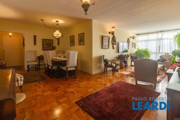 Este amplo apartamento de 270 m² revela uma combinação rara entre elegância atemporal, reforma estrutural completa e sofisticação técnica. Totalmente renovado com atualização integral das partes elétrica e hidráulica o imóvel entrega segurança, conforto e desempenho contemporâneo sem abrir mão do charme clássico de Higienópolis. A área social impressiona pela amplitude e fluidez dos ambientes. A sala principal integra estar e jantar com proporções generosas, piso nobre de acabamento impecável e marcenaria sob medida que organiza o espaço com discrição e refinamento. A sala de jantar é valorizada por uma adega elegantemente incorporada ao projeto, criando um ponto focal sofisticado para receber. A varanda amplia a área social e favorece iluminação natural abundante, enquanto as janelas de piso ao teto garantem ventilação cruzada eficiente, proporcionando conforto térmico e luminosidade ao longo de todo o dia. A iluminação foi cuidadosamente planejada com projeto luminotécnico que alterna luz difusa e pontos de destaque, valorizando texturas, painéis amadeirados e detalhes arquitetônicos. O sistema de ar-condicionado está presente em todos os ambientes, garantindo climatização homogênea e silenciosa. Na área íntima, são três dormitórios, sendo um deles atualmente configurado como escritório facilmente reversível ideal para quem busca home office com privacidade e ergonomia. A suíte master oferece atmosfera acolhedora e sofisticada, com closet generoso e excelente aproveitamento de espaço. Os banheiros seguem o padrão elevado do apartamento, com acabamentos de primeira linha e marcenaria planejada. A copa-cozinha, totalmente equipada, apresenta desenho funcional e elegante, com armários sob medida, bancadas amplas e integração prática com a área de serviço. Dependência completa de empregada e área de serviço ventilada complementam a funcionalidade do imóvel, mantendo a organização da rotina diária. O apartamento será vendido porteira fechada, totalmente mobiliado,