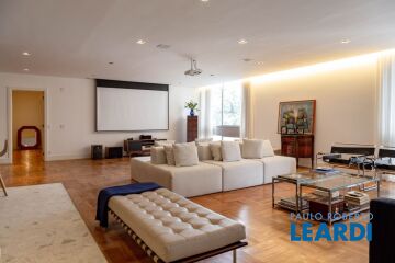 Apartamento em andar intermediário, recém reformado com acabamentos em alto padrão, sistema de iluminação sob gesso por meio de spots e pendentes, boa luminosidade natural, piso em tacos de madeira e com planta de 210,19m2 de área útil. Apresenta o seguinte desing: generoso living com espaço suficiente para 3 ambientes bem demarcados, sacada e cozinha (tipo "kosher") com balcão gourmet, lavabo, 3 dormitórios, sendo o principal com closet e suíte (com armários, box e ducha), 1 banheiro social completo, corredor de ligação entre living e dormitórios, área e banho para serviço. Disponibiliza 2 vagas cobertas. Lazer e Infraestrutura: hall de entrada, jardim, salão de festas e portaria 24hrs com clausura de pedestres e veículos. 10 minutos a pé das Estações da Linha Vermelha e próximo do Parque Buenos Aires, Faculdades Mackenzie, PUC e FAAP, Colégio Rio Branco, Santa Casa de Misericórdia e Shopping Pátio Higienópolis.
