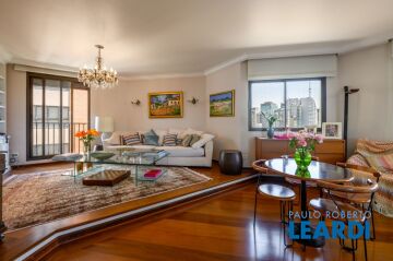 O piso superior conta com piscina, área gourmet e solarium, cozinha de apoio, sala com lareira e bar, local para sauna, duas suítes com varanda ou jardim de inverno, sendo uma delas em uso como escritório. Piso inferior possui hall de entrada, living, sala de tv, estar e jantar, varanda, lavabo, cozinha e sala de almoço, além de despensa, área de serviço e suíte para funcionária, área íntima com duas suítes, sendo a suíte master com closet e banheiro com hidro. No prédio, há vagas para visitantes, portaria 24 horas, piscina, fitness, quadra poliesportiva, playground, salão de festas, gerador. O charmoso bairro possui todas as comodidades de serviços, Colégio Dante Alighieri, Clube Paulistano, linha de metrô na Paulista, Shopping Centers, restaurantes e entretenimentos de lazer. "