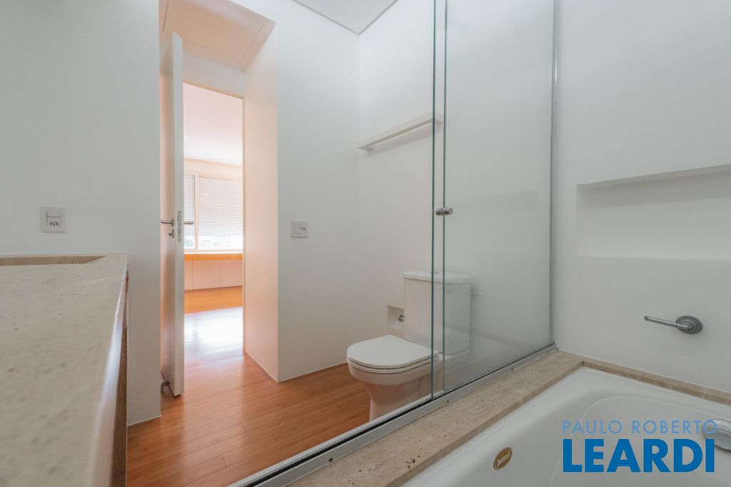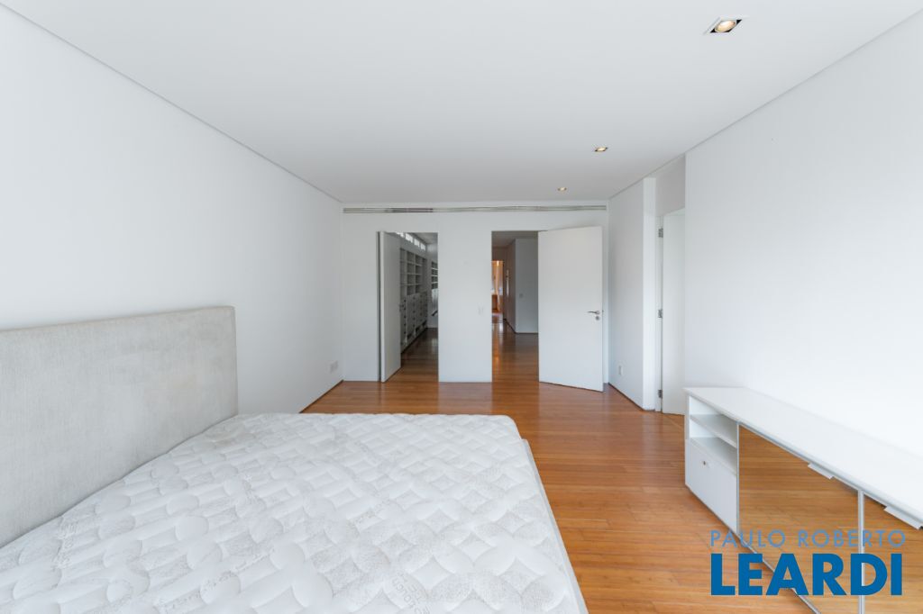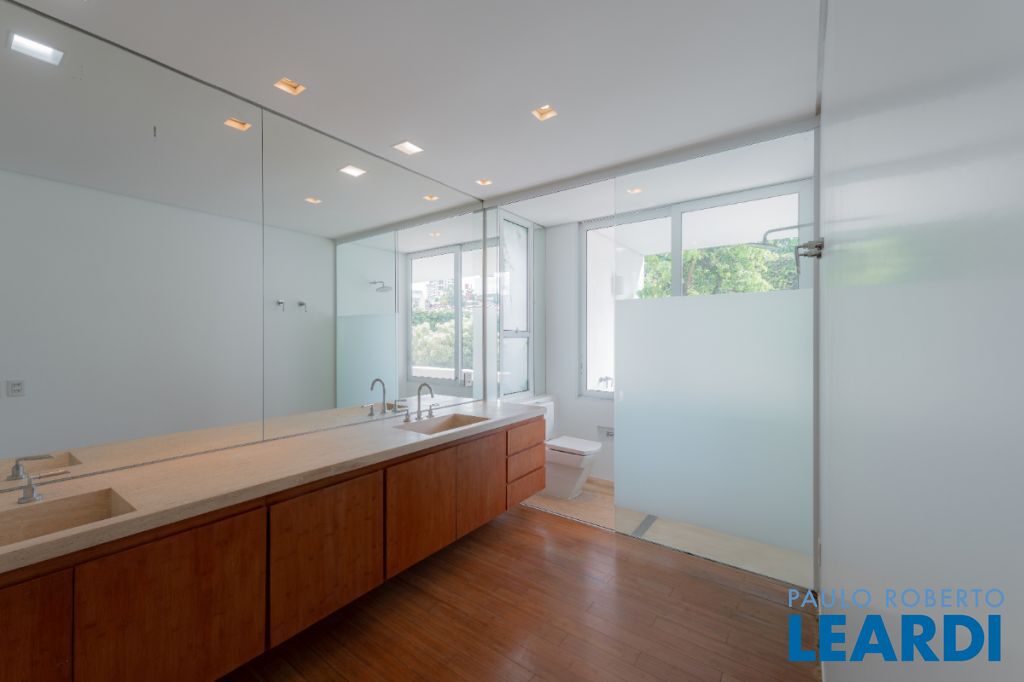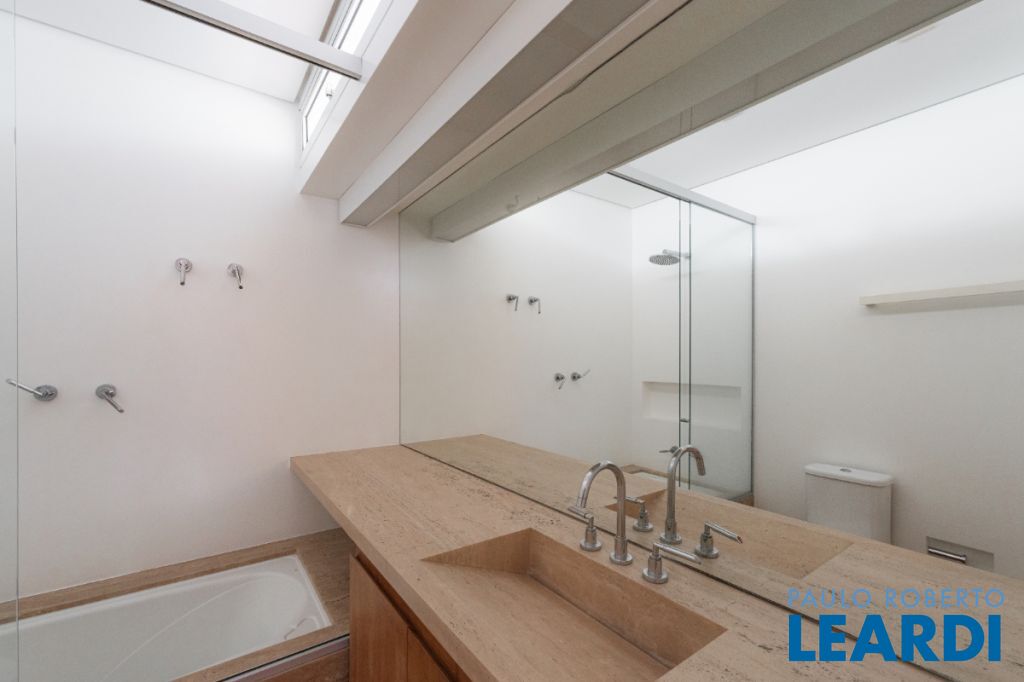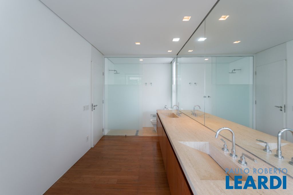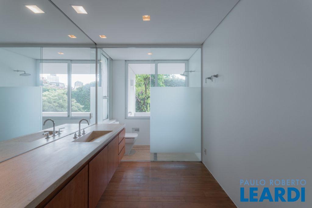 Casa de rua com 673 m² de área privativa, terreno de 376 m², 3 suítes e 5 vagas localizada no miolo do Jardim Paulista e a 4 minutos do Parque do Ibirapuera. O projeto assinado pelo arquiteto Paulus Magnus traz, entre outros diferenciais, guarita blindada, garagem subterrânea com plataforma giratória para manobra, sistema de tratamento de água, lavanderia e 2 suítes + copa para funcionários, gerador que abastece toda a residência e sistema de segurança.