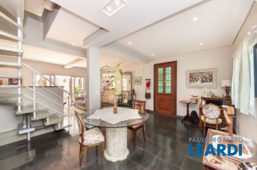 Sobrado acima do nível da rua com 441m² de área construída, privacidade total e uma linda vista do bairro. Com living para 3 ambientes e amplo terraço, sala de jantar espaçosa com possibilidade de integração da cozinha. Área íntima com 4 dormitórios, sendo 3 suítes espaçosas é uma linda vista do bairro. Área externa com piscina, churrasqueira, 2 dependências de serviço, muito clara e ensolarada e 6 vagas de garagem. Tudo isso em rua tranquila e com vigia 24 horas para segurança da sua família. Agende sua visita.