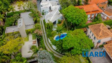 Em uma das áreas mais desejadas do Jardim Morumbi, encontra-se uma residência verdadeiramente única: uma casa assinada pelo renomado arquiteto Eduardo Longo, mestre em compor espaços onde a geometria, a luz e o concreto aparente convivem com fluidez absoluta. Logo ao chegar à casa o olhar é conduzido por volumes bem definidos, planos sobrepostos e cortes precisos marcas registradas de Longo, que transformam cada ambiente em uma experiência sensorial. Implantada em um terreno privilegiado de 1.550 m², com 422 m² de área construída, a casa se integra de maneira orgânica ao entorno. O projeto paisagístico, assinado e cuidadosamente executado, faz da área externa uma continuação poética dos interiores: jardins desenhados por sucessões de níveis, maciços floridos e caminhos que revelam cenários, onde as congéias merecem destaque árvores que pontuam o jardim com flores vibrantes e textura, criando enquadramentos naturais que variam conforme as estações. A piscina, estrategicamente posicionada, reflete o céu pelas claraboias e pelos recortes geométricos dos tetos, enquanto o verde circunda todos os ângulos da casa. No plano inferior, junto à área externa, estão a acolhedora sala com lareira e a sala íntima, ambas em frente à piscina. São ambientes que dialogam diretamente com a luz natural e com o paisagismo, oferecendo uma atmosfera de convivência informal, acolhimento e contemplação do jardim. Subindo um nível, chega-se ao hall, marcado pelos jogos de planos característicos de Longo; aqui, um elegante lavabo antecipa a sequência espacial. No patamar seguinte, a sala de estar se revela ampla e serena, iluminada por claraboias e cortes que esculpem a luz. A sala de jantar, em outro plano, conecta-se de forma fluida à copa e à cozinha totalmente equipada, integrando-se à área de serviço, lavanderia, depósitos e à suíte de funcionários. A planta funcional privilegia circulação e privacidade, com múltiplos espaços de apoio e armazenamento.